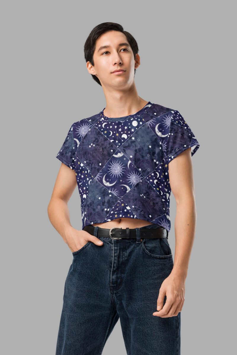 Celestial Patchwork Print Crop Tee