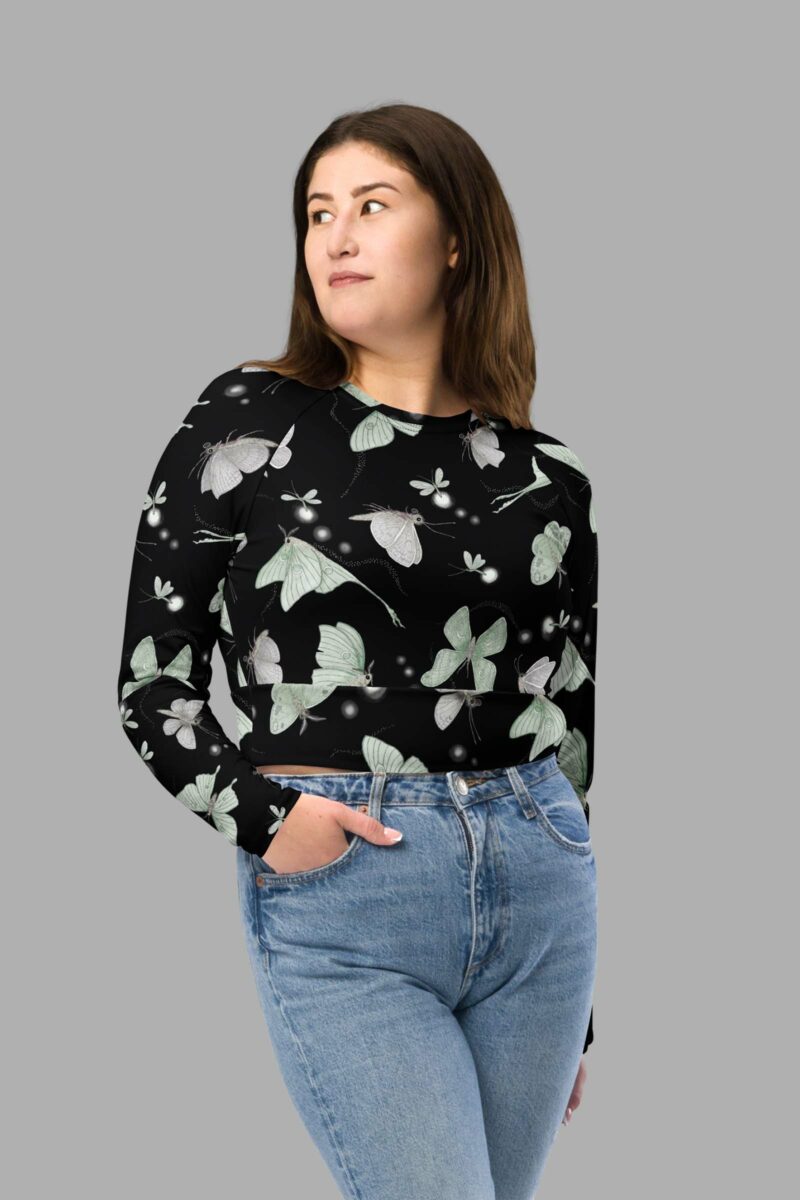 Moonflight Print Long-Sleeve Crop Top